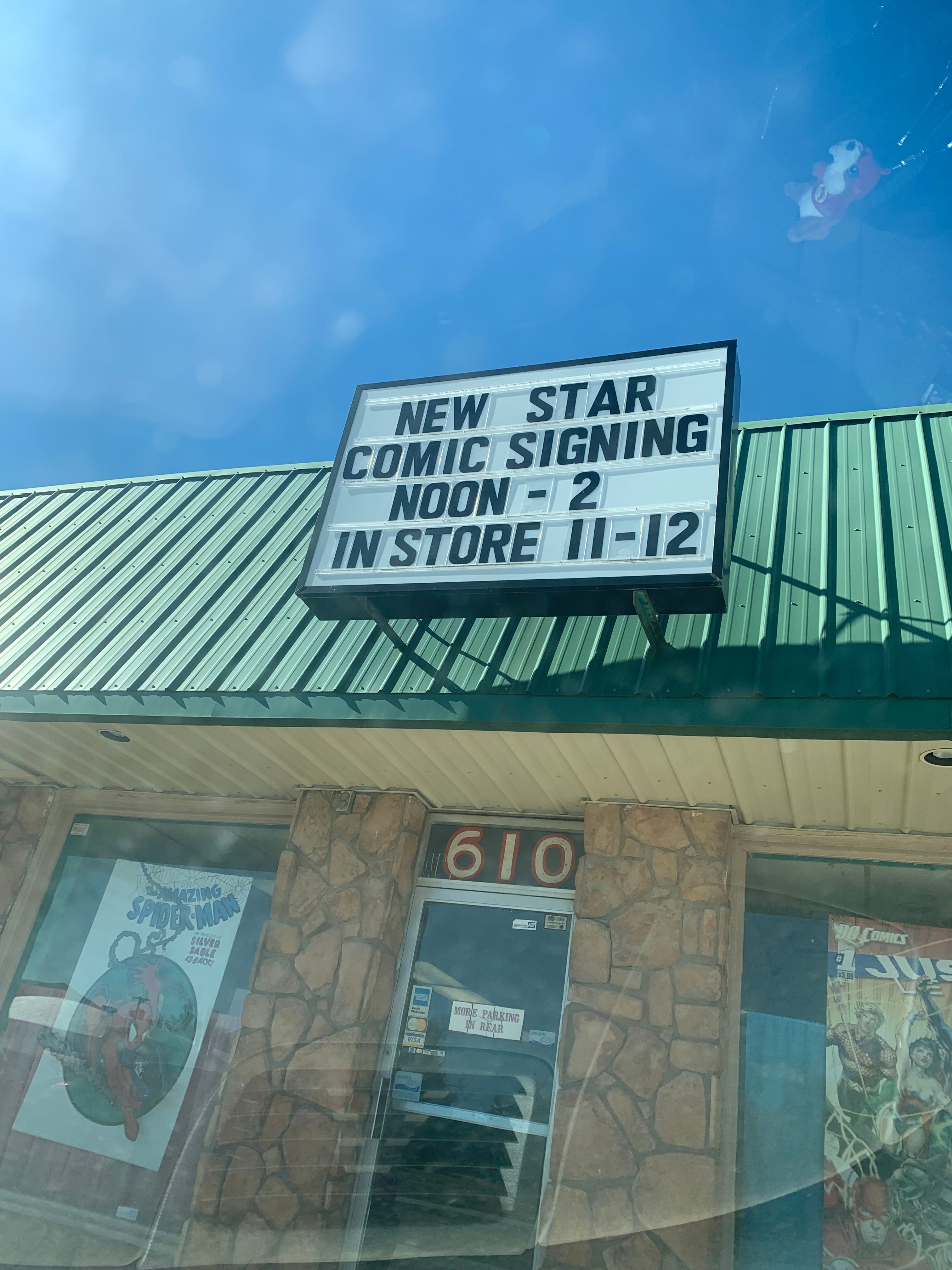 As mentioned in Dispatch #3, New Star Comics had a signing last month at Speeding Bullet Comics in Norman! We had a lot of fun chatting with new fans and signing issues of New Star Team-Up #1! We gained a few new subscribers as well. Thanks to all who came out to see us and we hope to do it again soon! Stay tuned to the Dispatch for future signing/launch party dates!