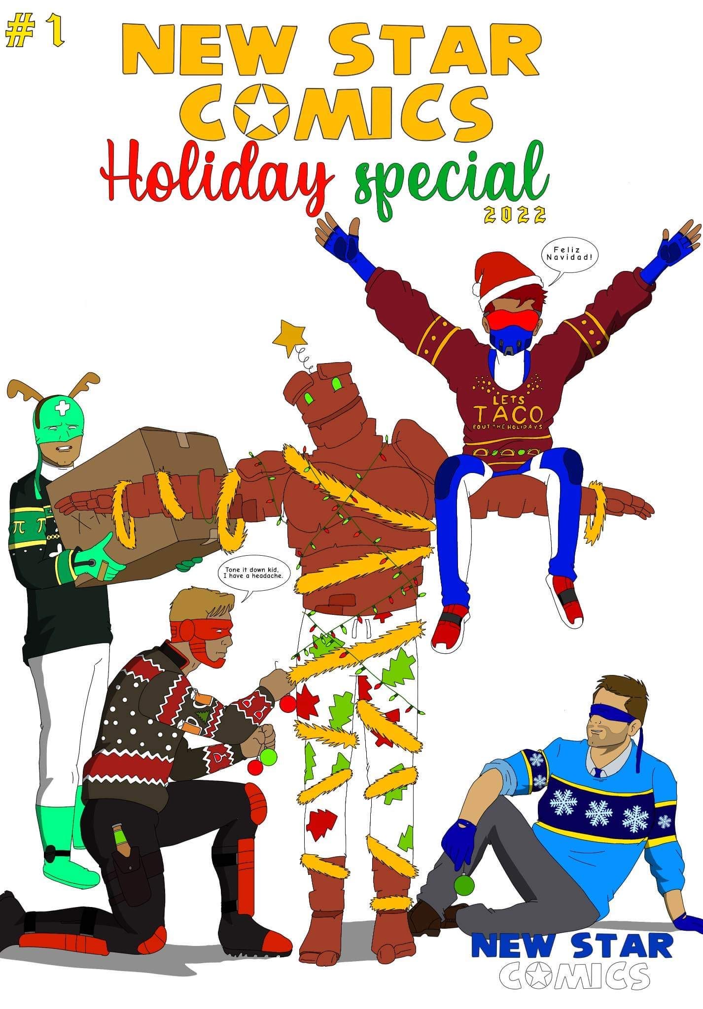 What’s Christmas without a Christmas special?? Well, boy do we have one for you! The New Star 2022 Holiday Special hits stores next week! The special, featuring heroes and villains from across the New Star line, weaves together three individual stories into one Christmas adventure! The special also introduces our newest character, Unearth! He also happens to be our Character of the Month so you can learn all about him a little bit later in the Dispatch. The holiday special will be on the shelves of New World Comics (6219 N Meridian Ave, Oklahoma City, OK 73112) in Oklahoma City and Speeding Bullet Comics (614 N Porter Ave, Norman, OK 73071) in Norman! We hope you check it out. Makes a great stocking stuffer!